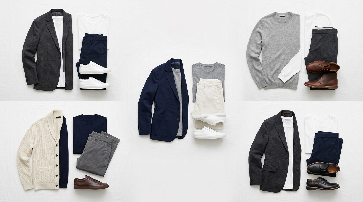 That is five distinct outfits using roughly fourteen pieces with significant overlap. None of them required morning creativity. All of them look deliberate. The system works because the structure is fixed and the variation comes from which pieces you insert — not from reinventing the wheel every day.