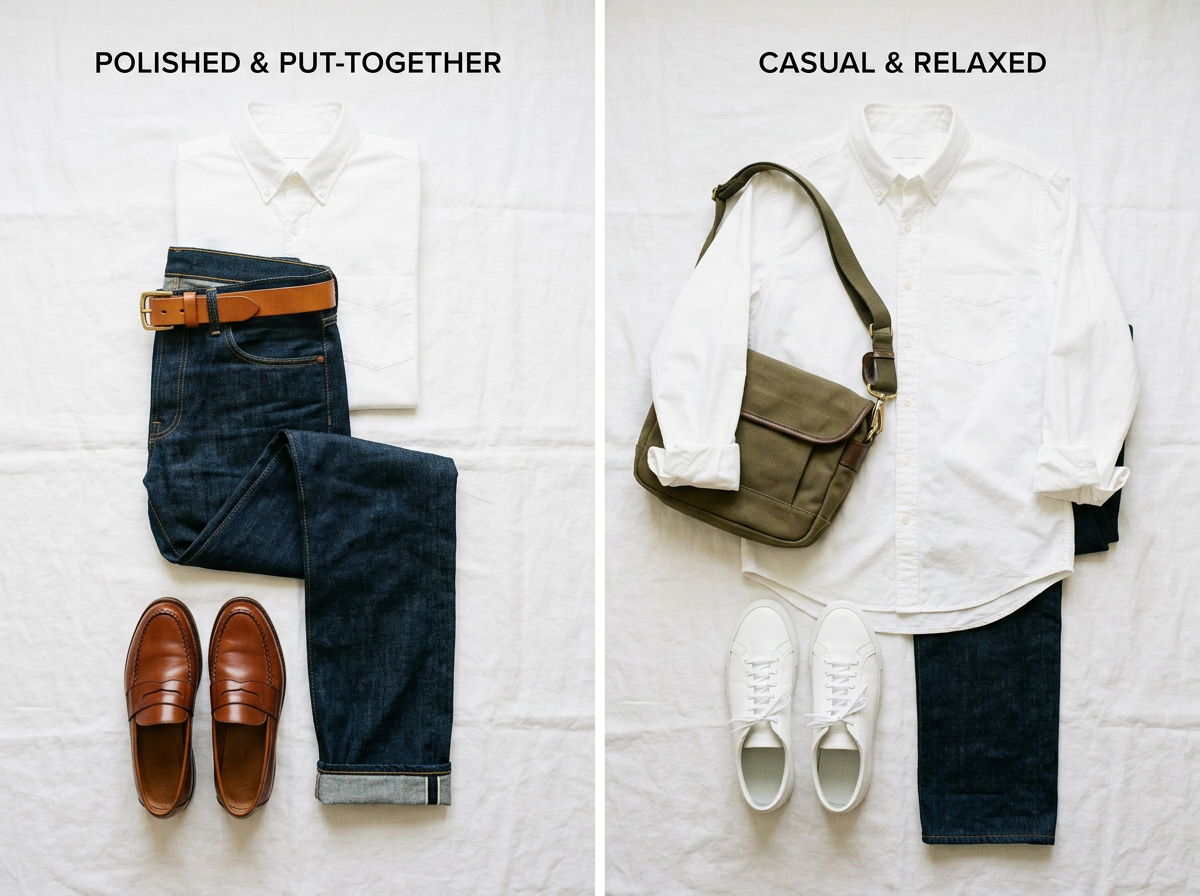 Ігноруєш силу аксесуарів. Одна й та сама комбінація джинси-і-футболка виглядає як три різні образи з різним взуттям, іншою сумкою чи іншим ременем. Аксесуари — найшвидший спосіб створити різноманітність без нових покупок.