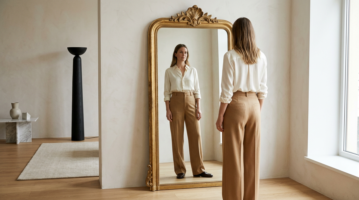 Пропорція як головна дійова особа. Пропорція — найневидиміша якість одягання і найбільш відчутна миттєво. Широкі брюки в балансі з приталеним верхом читаються як навмисне рішення. Ті самі брюки з об'ємним светром — як випадковість. Тихий люкс — це пропорційне одягання, взяте серйозно. А це означає розуміти власне тіло і його стосунки з силуетом, а не слідувати формулам.
